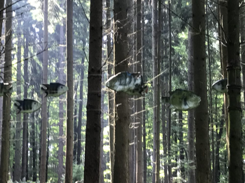 „Das Naturgespräch, Verwandschaft, Verborgenes, Wegweisheiten, Fremd, Schattenzyklus, das hängende Aquarium, Barbarossa – Feuer und Wasser, Ehrenringe, Maistrommel, Lebensraum, Magnetfeld, Waldgeister, die Joggerin, Lichtzyklus“ begegneten uns. Die entsprechenden Infotafeln erklärten die einzelnen Werke. Neben den interessanten Kunstwerken begegneten uns zahlreiche Pilzsammler mit gut gefüllten Körben. Auch wir hatten einen sachkundigen Pilzsammler in der Wandergruppe, der einige schmackhafte Pilze mit nach Hause nehmen und uns auch verschiedene Pilzsorten erklären konnte. Zum Abschluss  kehrten wir in eine Melsunger Gaststätte mit sehr speziellen Angebot ein. Es war ein schöner Ausflug an diesem Spätsommertag mit vielen netten Gesprächen. Der nächste Wandertag findet am