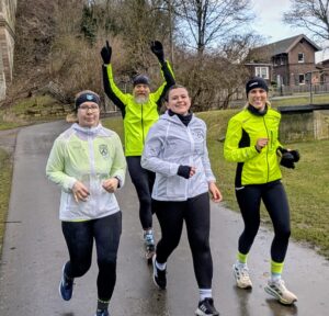 Die Runners bei einer gemeinsamen Laufeinheit – v. links: Simone, Björn, Elena und Meli