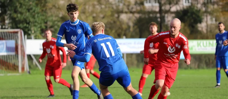 Lukas Rudolph gab dabei sein Debüt im SCE-Tor, vertrat den abwesenden Lasse Blochel und zeichnete sich nach drei Minuten im Eins-gegen-Eins mit Usman Suleman direkt aus. In den folgenden 20 Minuten spielten seine Vordermänner zielstrebigen Fußball und entschieden das Spiel bereits früh. Einen indirekten Freistoß im gegnerischen Strafraum setzte Felix Mertsch noch daneben (5.). Elias Heerdt erzielte kurz darauf aber die frühe Führung (8.). Julian Bachmann ließ den nächsten gut ausgespielten Angriff über die rechte Seite liegen (12.) und Leroy Bawuah scheiterte in der nächsten Aktion sehenswert am Pfosten (13.). Seine komplette spielerische Klasse zeigten die Gäste beim 0:2, als Felix Mertsch nach 14 Edermünder Ballstationen am Stück Niklas Andräß fand, der Hansi Hypscher im Homberger Tor per Heber überlistete (15.). Die Hausherren, die sich angesichts der starken Edermünder Anfangsviertelstunde bereits der nächsten hohen Niederlage gegen den SCE entgegensahen, gaben sich nicht auf und begannen sich nun Chance um Chance zu erspielen. Ganze elf Abschlüsse verzeichnete die Seitz-Elf im ersten Durchgang. Hannes Seitz verfehlte zentral aus elf Metern den Kasten (28.), Pascal Kehr komplett freistehend nach einem Eckball ebenfalls (37.). Dazu kam eine bärenstarke Leistung von Debütant Rudolph, der die Kopfball-Verlängerung Nico Brandts entschärfte (39.), im Anschluss an den Pfostenschuss von Marcel Mamedow den Nachschuss von Leonard Klinge überragend parierte (41.) und sich von einem abgefälschten Freistoß ebenfalls nicht aus der Ruhe bringen ließ (42.). Der SCE konnte glücklich sein, nach der Homberger Angriffswelle überhaupt noch zu führen.