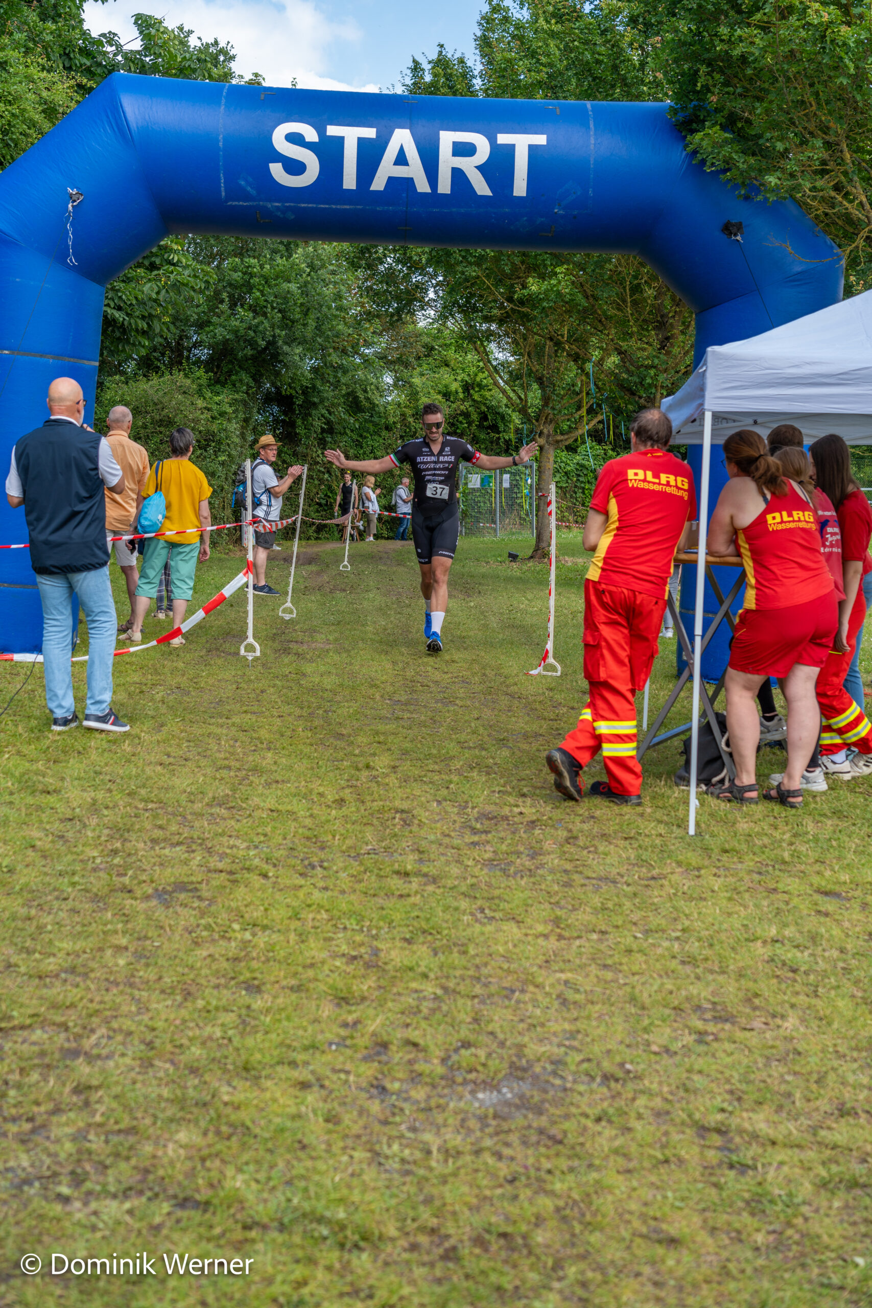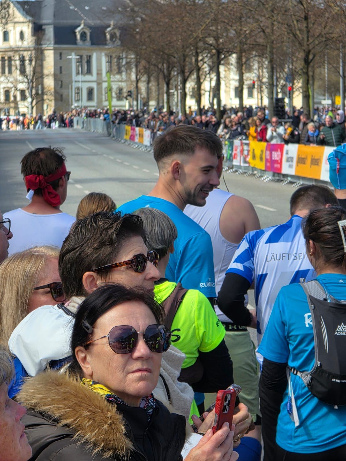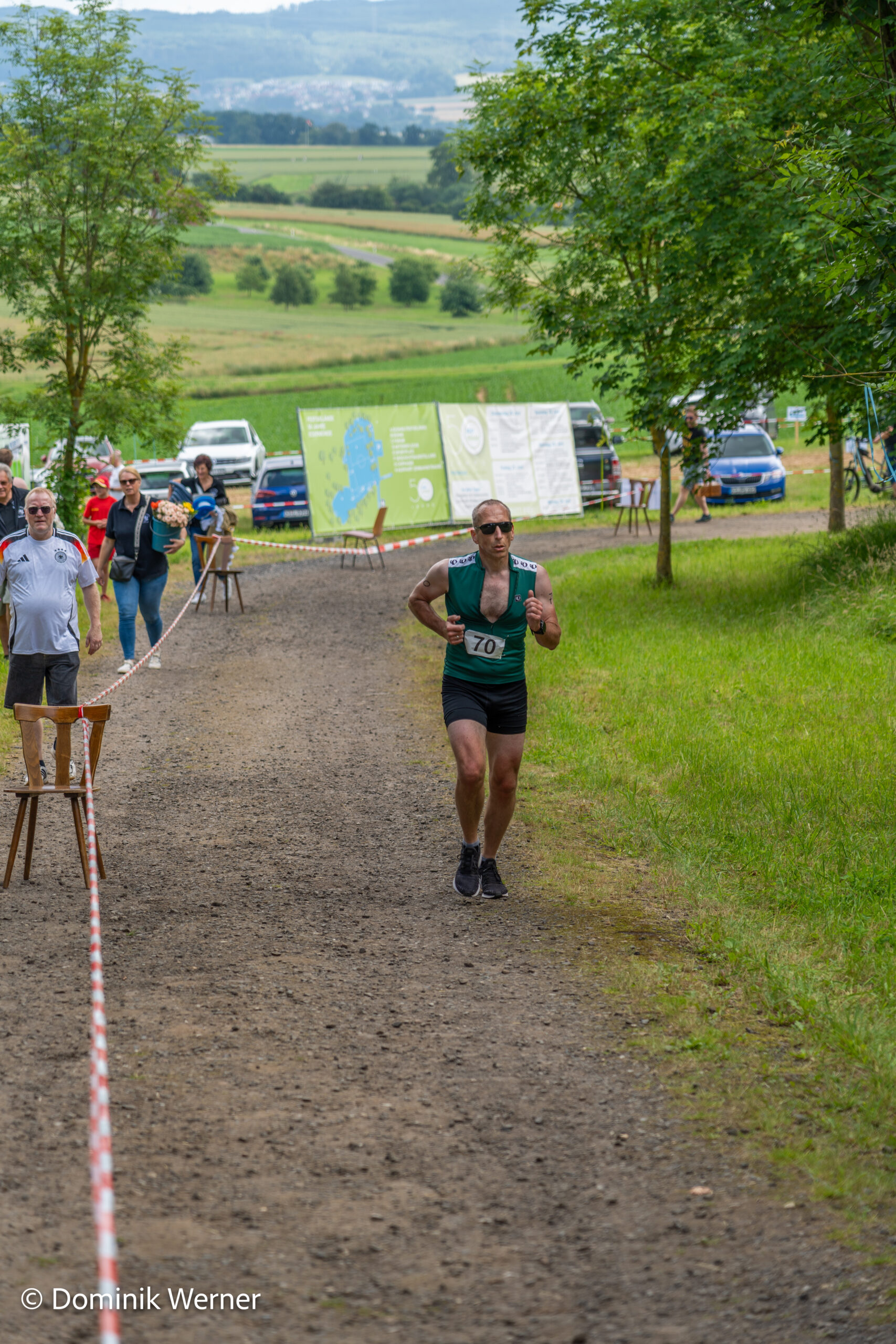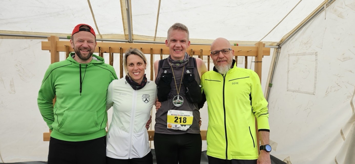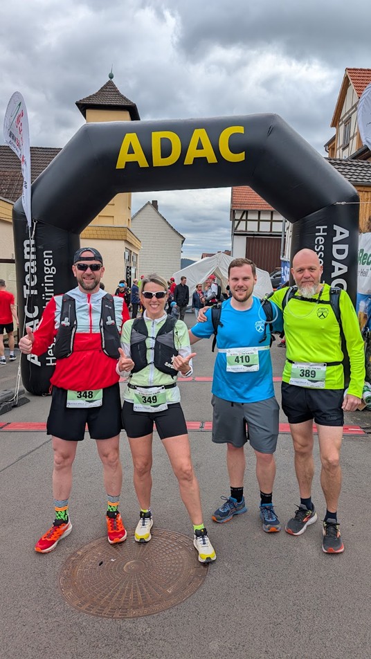 Die wellig-hügelige Strecke verlangte den Teilnehmenden bei nass-kaltem Wetter einiges ab. Doch die Stimmung entlang der Strecke war fantastisch – Kaufungen zeigte sich in bester Partylaune und feuerte die Läufer*innen fröhlich an.