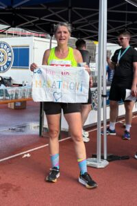 Auf der anspruchsvollen Marathon-Distanz bewies Nicole Salzmann Ausdauer und Kampfgeist. Gleich bei ihrem Debüt meisterte sie die 42,195 Kilometer in einer hervorragenden Nettozeit von 04:26:58 Stunden und sicherte sich damit einen starken 9. Platz in ihrer Altersklasse W45.