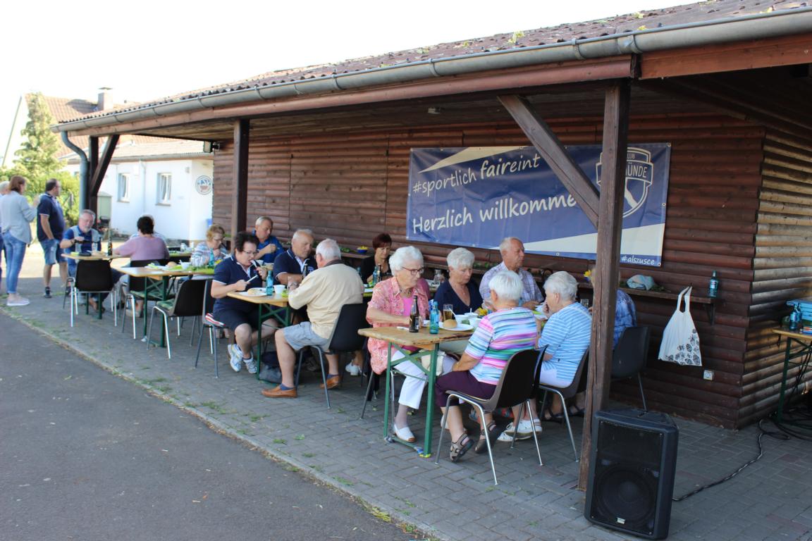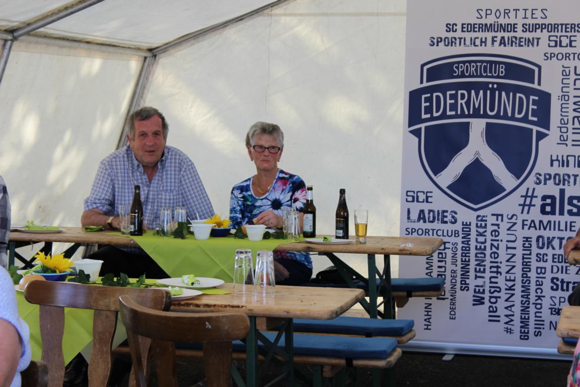 Bei herrlichem Sommerwetter fand der Seniorennachmittag für SCE Mitglieder am Samstag den 11.08. auf dem Sportplatz in Grifte statt. Der SCE setzt mit dieser Veranstaltung eine schöne Tradition des TSV Grifte fort. Im TSV Grifte hatte Hans-Jürgen Grunewald 2003 die Idee, die älteren Mitglieder des Vereins ab 70 Jahren regelmäßig zu einem gemütlichen Beisammensein einzuladen. 15 Jahre später setzt der Nachfolgeverein diese Tradition nun fort. Der Name des Vereins hat sich zwar bekanntlich geändert, aber die handelnden Personen nur in Teilen, denn weiterhin ist Hans Jürgen Grunewald hier in der Organisation maßgeblich beteiligt, natürlich federführend unterstützt von seiner Frau Jutta!