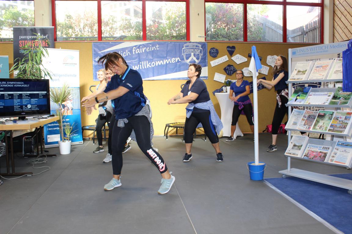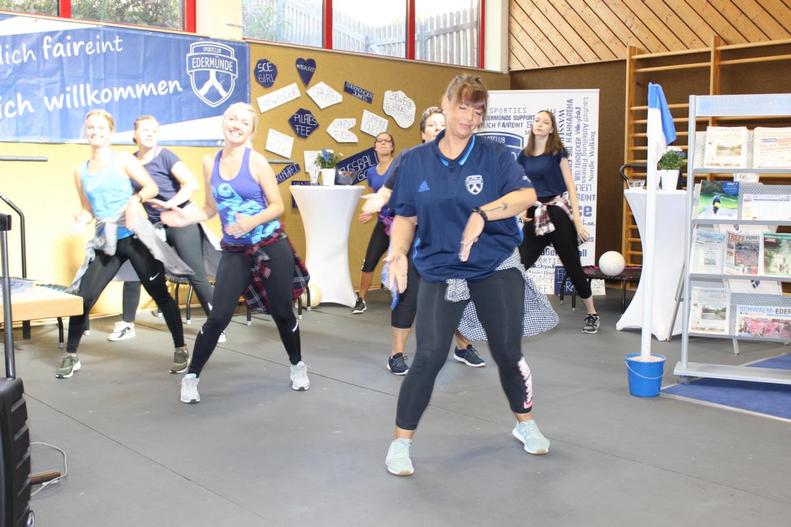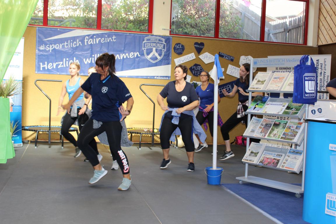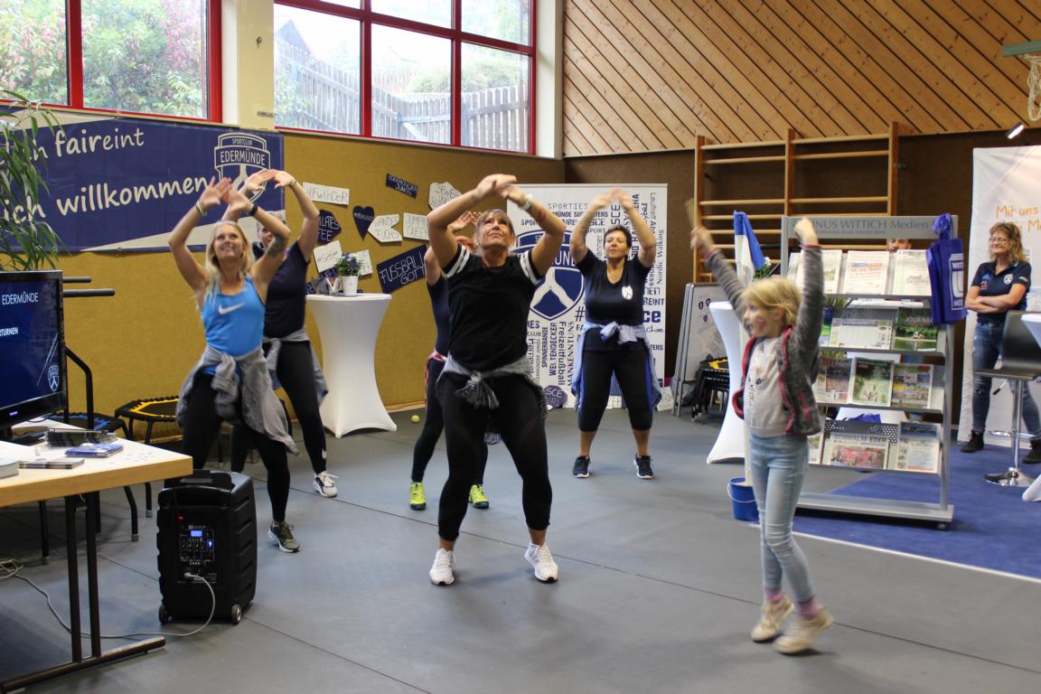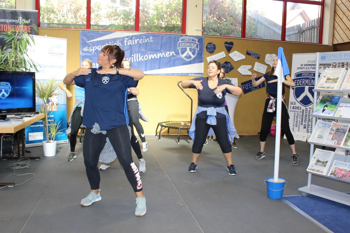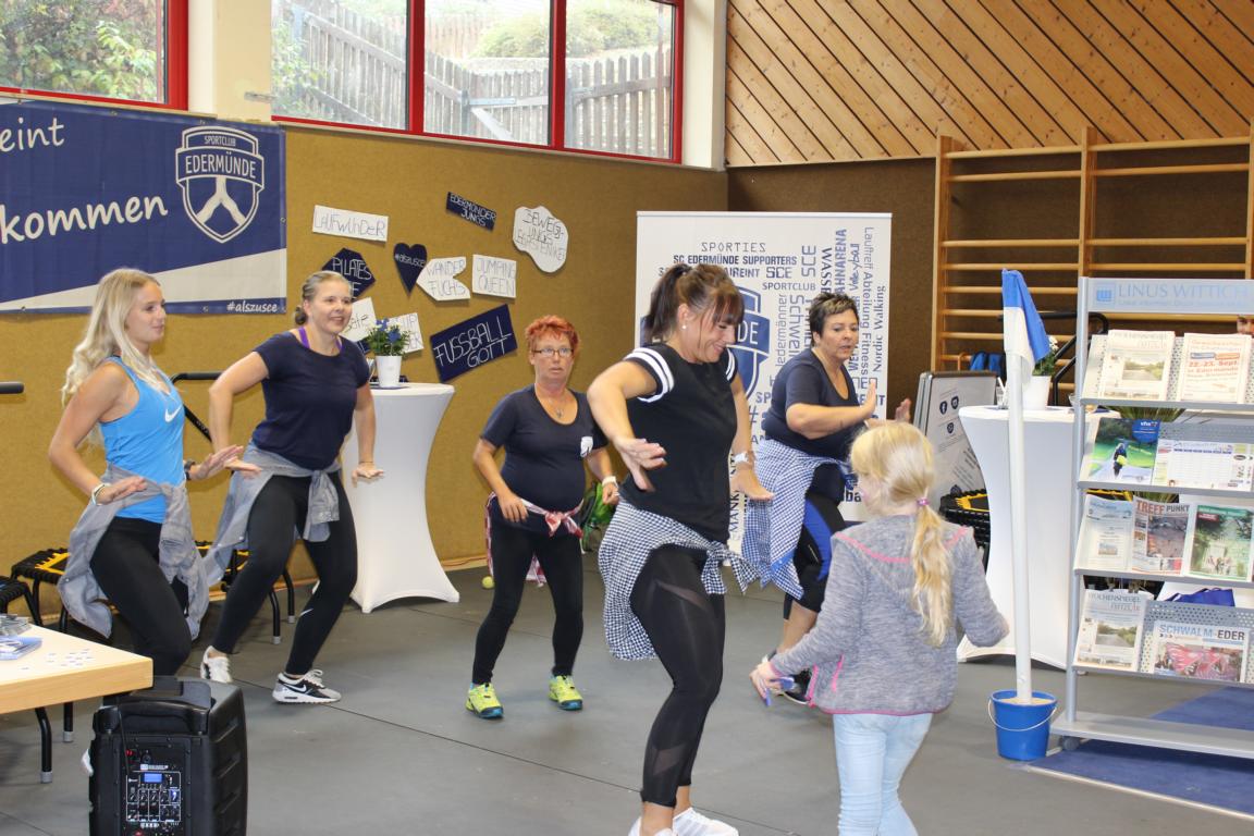 SCE Vorsitzender Heiko Petersen begrüßte zusammen mit seinen Stellvertretern Stefan Hilgenberg und Marcel Klitsch 63 Seniorinnen und Senioren aus ganz Edermünde, dabei kam ein Teilnehmer sogar extra aus Eschborn angereist, um alte Sportkameraden wiederzusehen. Neben vielen Informationen zum Vereinsgeschehen, gab es auch ein kleines Rahmenprogramm. Zunächst brachte Jürgen Eichel die Gäste mit Nordhessische Mundartgeschichten zum Schmunzeln. Anschließend präsentierte mit Lisa Kunkis, Diana Rupp und Nadine Führus drei Fitnesstrainerinnen vom SCE Ausschnitte aus dem aktuellen Fitnessprogramm des Vereins. World Jumping und Zumba begeisterten einige Gäste dermaßen, dass man schnell Forderungen an den Vorstand formulierte, diese Angebote doch auch seniorengerecht anzubieten. Man darf gespannt sein, ob demnächst auch die ab 70jährigen beim SCE nicht nur zur Stuhlgymnastik gehen, sondern auch Senioren Zumba tanzen!?