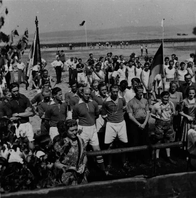 4.000 (!) Besucher kamen zur Einweihung des Platzes, welcher ursprünglich mit einer Laufbahn abgerundet war und sahen ein abwechslungsreiches Programm. Die Kasse stand übrigens weit vorn in der Ludwig-Jahn-Straße. Die Bilder muten schon alle sehr olympisch an! Und da sag noch einer wir würden es manchmal übertreiben…